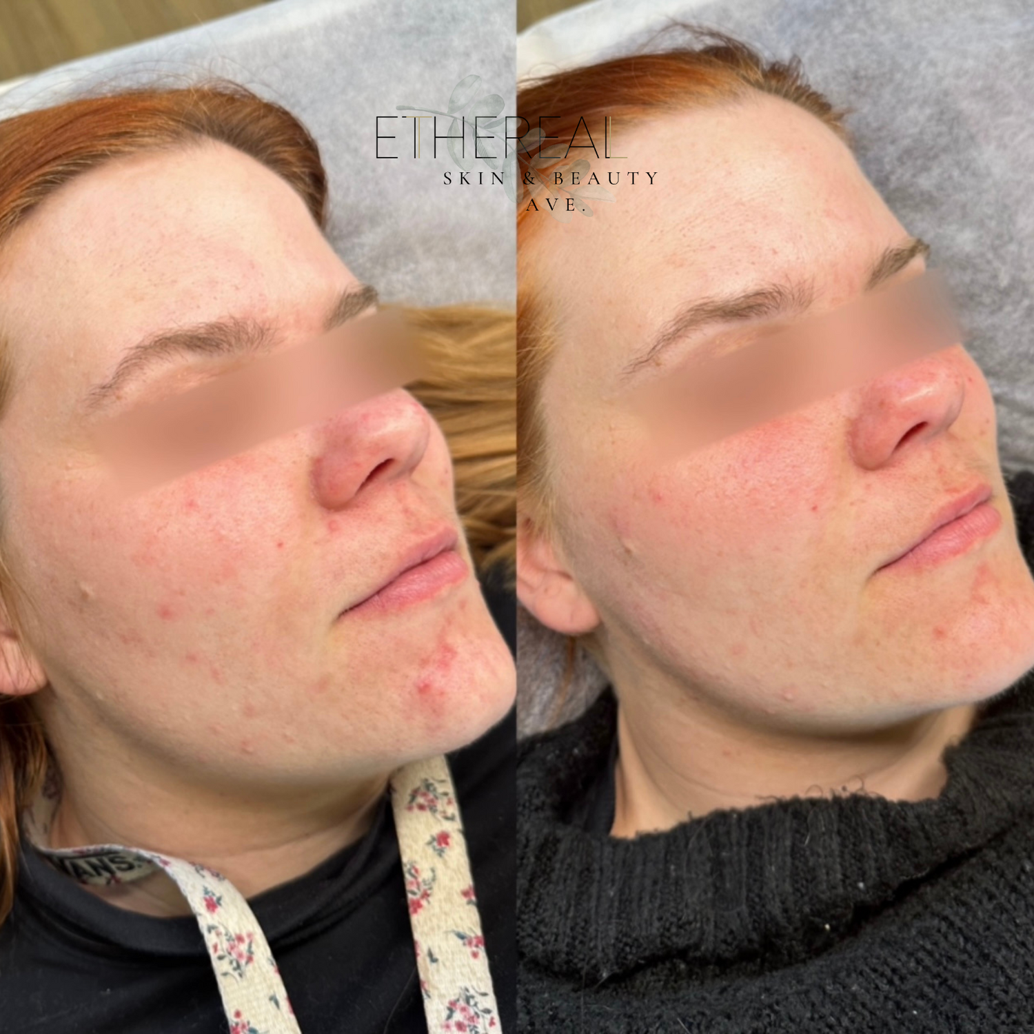 Laser is beneficial to acne by not only treating the active acne already on the face but also preventing future breakouts by cleaning out the pores, leaving behind a fresh canvas. Laser can also help reduce scarring marks left on the face from old breakouts by evening out the tone of the skin. No downtime is needed for this treatment with only a small amount of Erythema (flushing) left on the skin for less then 24hrs.