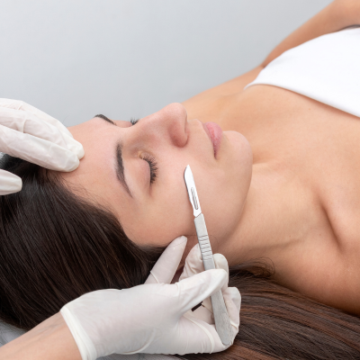 Dermaplaning is the use of a Surgical Blade to remove the Vellus Hair (aka. "Peach Fuzz") and old built up skin cells that are sitting on the surface of the skin with a slip solution. This results in a smooth, glowing complexion ready for an event or for your monthly maintenance routine... although these can be done as close as 2wks apart. No downtime whatsoever and a fresh canvas for your makeup application, what more could you want!