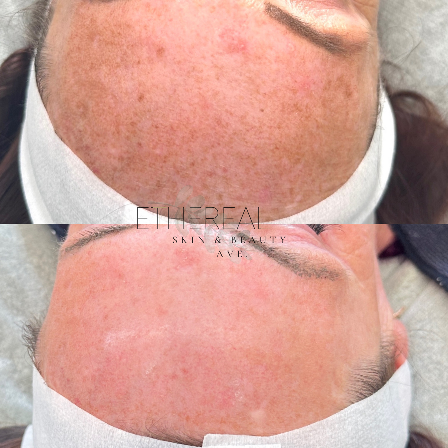 Using a shorter wavelength to target and breakdown surface pigmentation while exfoliating and increasing cell turnover. This is best suited for those with a full face of even pigmentation such as Freckles or Sun Damage.