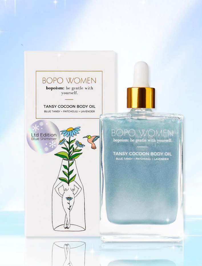 A Limited Edition Version of Tansy Cocoon Body oil with Natural Blue Mica is now available just in Time for Christmas!
